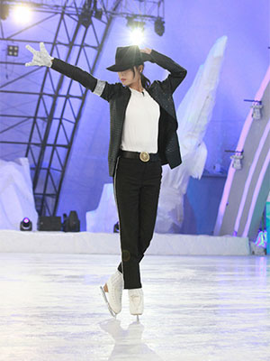 根据《跨界冰雪王》组委会的赛制,单期节目为个人秀。所以,本期明星营员们迎来了首场个秀挑战。张静初作为迈克尓杰克逊的超级迷妹,穿上西装带上礼帽,脚踏滑冰鞋,活脱脱一个女版杰克逊,在冰上上演了一段传奇故事。